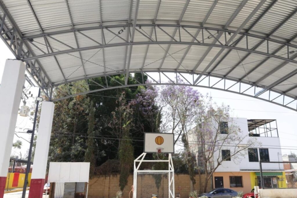 Oaxaca de Juárez, Oax., 30 de marzo de 2026.- Con el objetivo de brindar a la población espacios óptimos para actividades sociales, culturales y deportivas, el Gobierno del Estado, a través de la Secretaría de Infraestructuras y Comunicaciones (SIC), construyó el techado de la cancha de usos múltiples en la colonia La Joya, agencia municipal de Pueblo Nuevo, perteneciente al municipio de Oaxaca de Juárez.