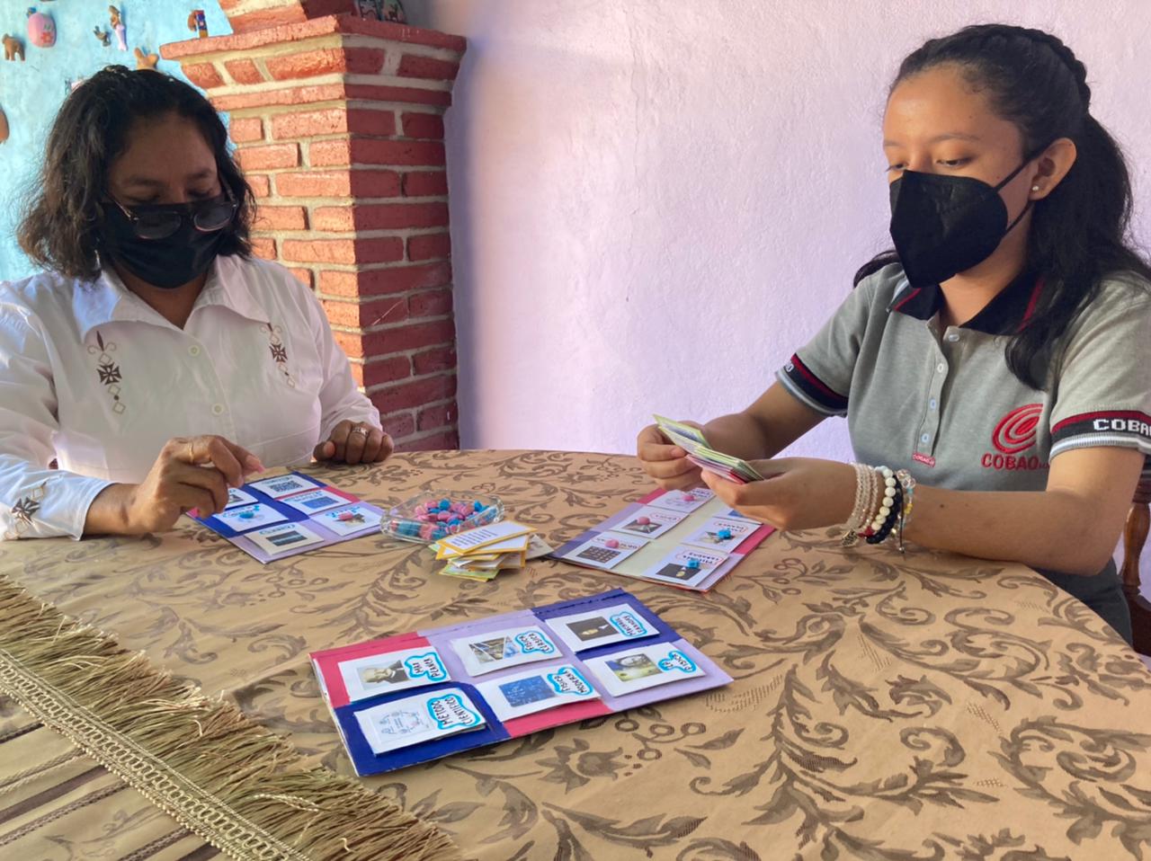 “La Lotería Didáctica tiene su base en el juego original de la Lotería Mexicana y después de muchas ideas, construí el juego de mesa que consta de cuatro tablas y 24 fichas, utilizando cartón, madera, hojas de rehúso, granos de maíz y pinturas, entre otros materiales”, comentó Alondra Yaravit.