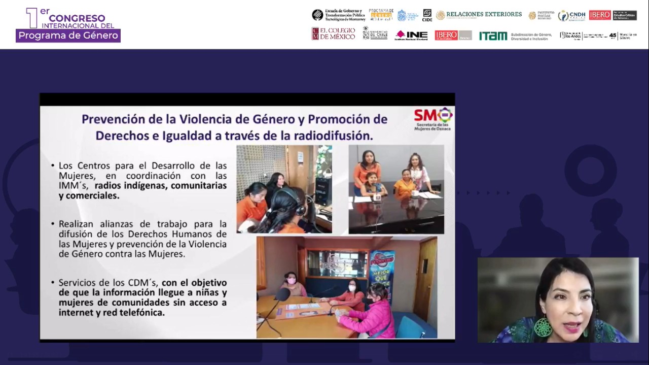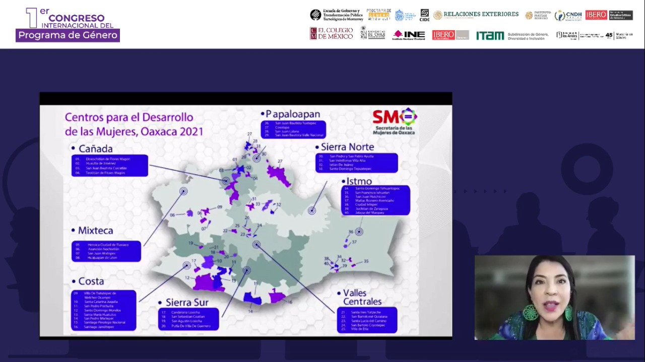 Oaxaca de Juárez, Oax. 6 de noviembre de 2021. En el 1er Congreso Internacional del Programa de Género Modalidad Virtual “Desafíos para la Igualdad de Género Frente al Contexto Actual”, convocado por el Tecnológico de Monterrey, universidades de Chile y Colombia, entre otras instituciones, la titular de la Secretaría de las Mujeres de Oaxaca (SMO), Ana Vásquez Colmenares Guzmán, expuso los resultados positivos del rediseño operativo de los Centros para el Desarrollo de las Mujeres (CDMs).