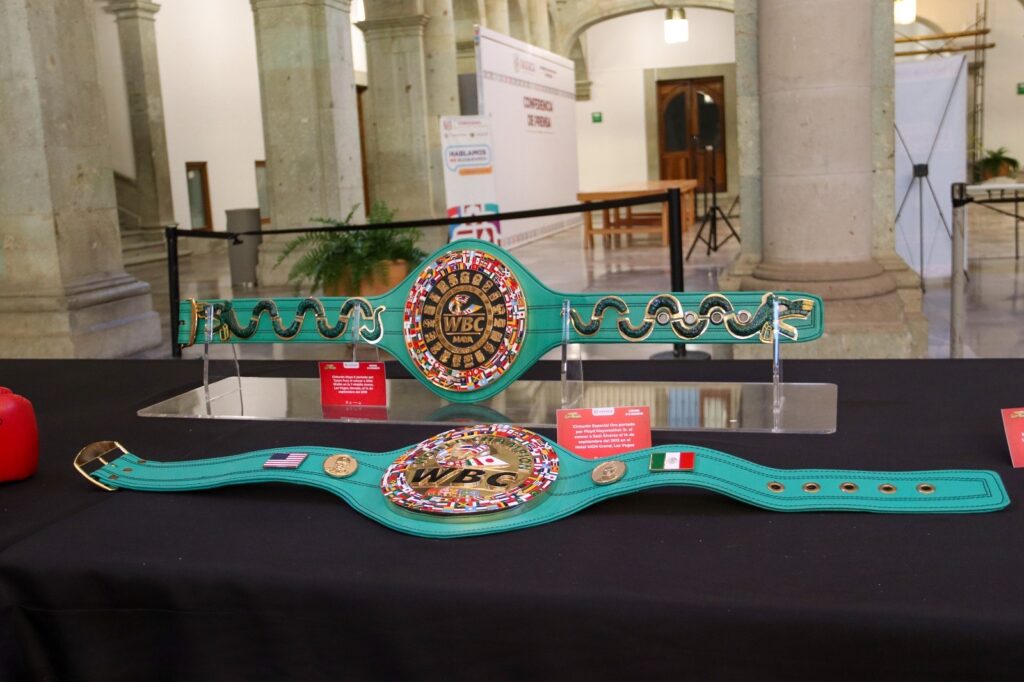 Y el Cinturón Mestizo que también portó Saúl “Canelo” Álvarez al vencer a Billy Joe Saunders en el AT&T Stadium de Arlington, Texas en mayo de 2021 y hace alusión al lienzo charro de Guadalajara, Jalisco, lugar del que es originario el boxeador.