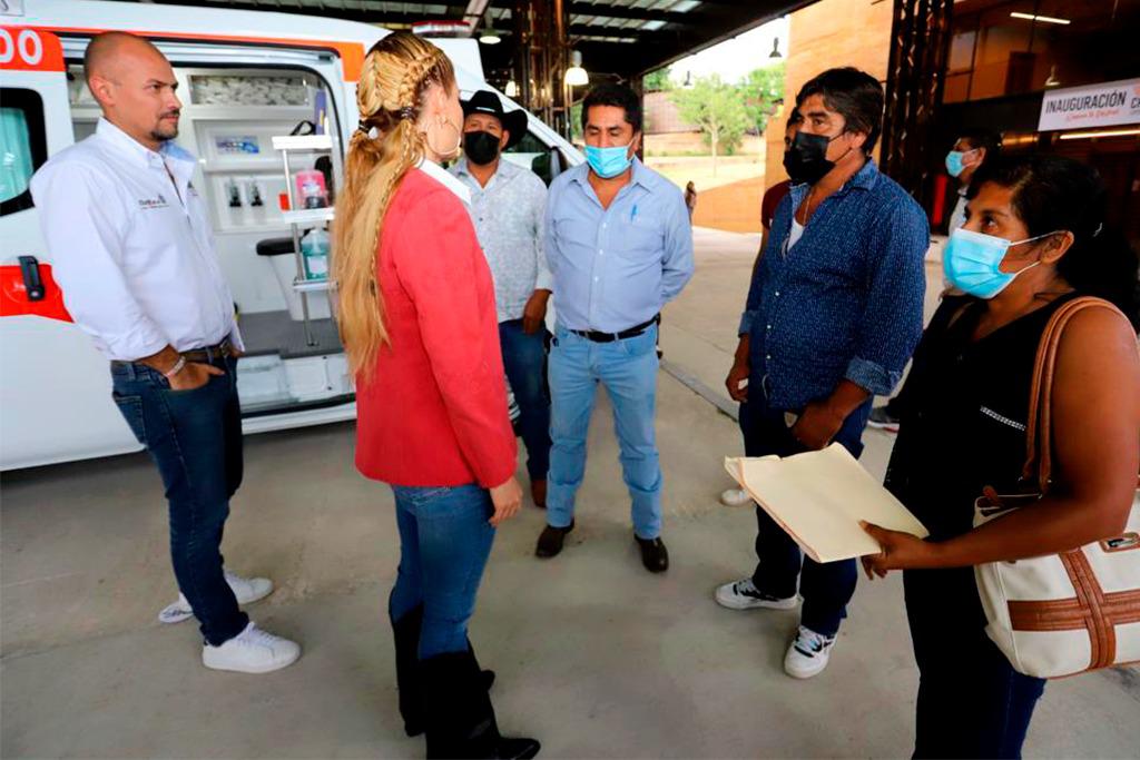 Finalmente, en materia de salud, la esposa del gobernador, maestro Alejandro Murat Hinojosa, entregó ambulancias de traslado a la Agencia de San Isidro Ojo de Agua, Villa Sola de Vega, en la Sierra Sur, refrendando así su compromiso con la sociedad oaxaqueña, en materia de atención a los servicios de salud para la población, sin distinción alguna. Logrando que cada vez más, en Oaxaca, exista una cobertura más amplia a estos servicios básicos de calidad, para que las familias oaxaqueñas puedan acceder a estos derechos, en cualquier parte de las ocho regiones del estado, brindando seguridad en todo momento.