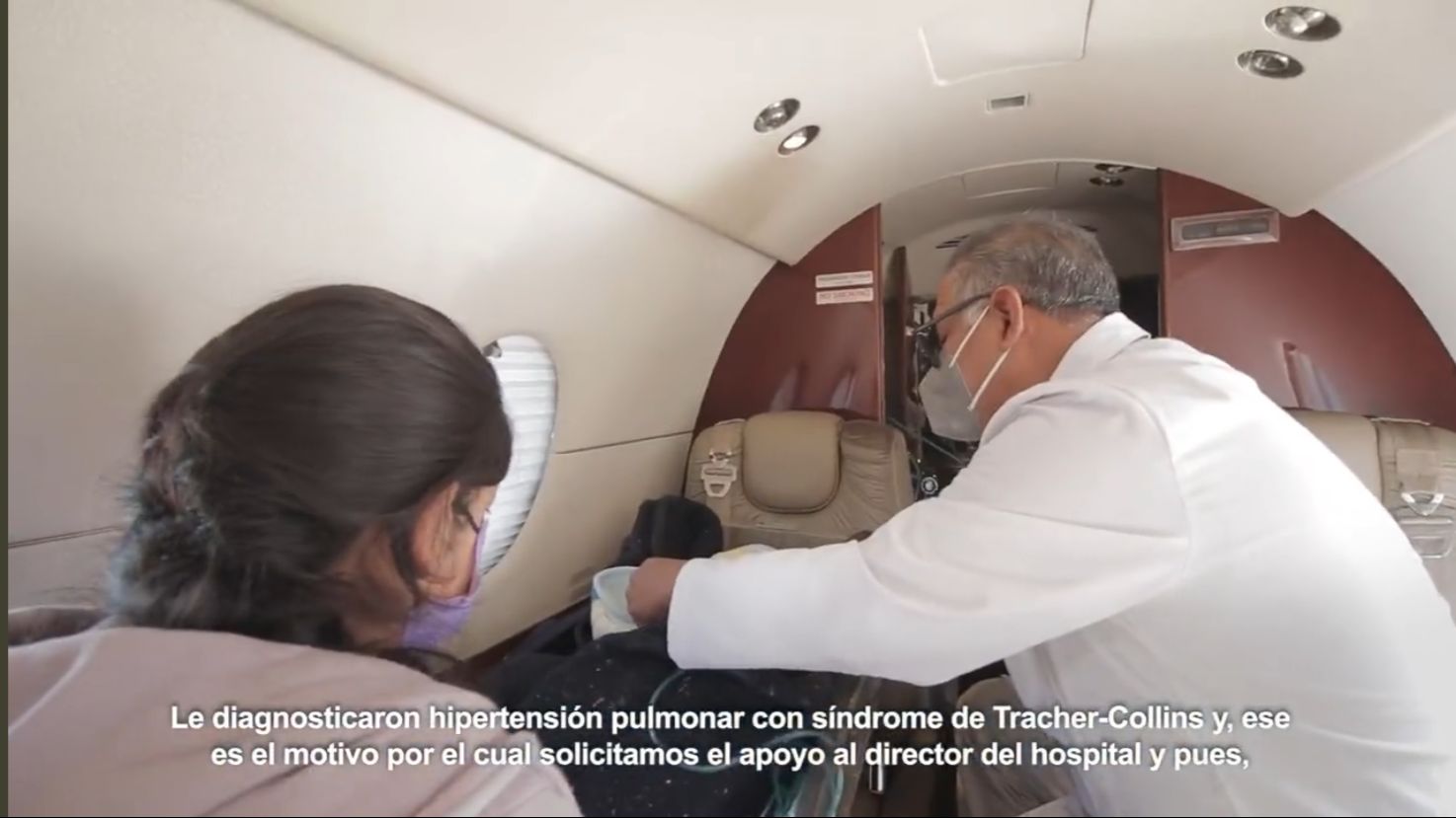 Tal fue el caso de Luis Bautista Hernández y su esposa, Iraís Hernández Rojas, quienes necesitaban trasladar con urgencia a su pequeño hijo diagnosticado con hipertensión pulmonar y síndrome de Tracher- Collins, a la ciudad de Guadalajara, para recibir atención especializada. Dicho matrimonio, no contaba con los recursos necesarios para cubrir este traslado aéreo, por lo cual, no tenían esperanza alguna en poder darle la atención necesaria a su pequeño, hasta que el médico que los atendió, les brindó el número de la señora Ivette Morán de Murat, quien inmediatamente al escuchar la petición, giró las instrucciones necesarias para atender el caso y brindar el apoyo necesario a la familia.