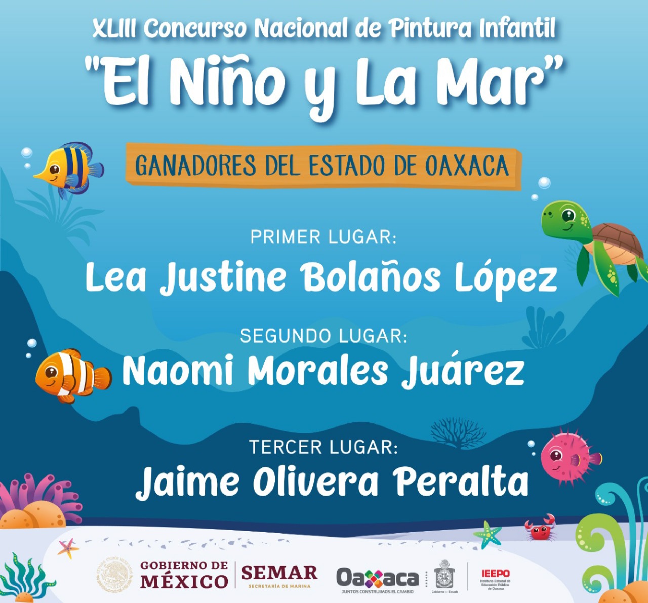 Felicita Gobierno de Oaxaca, a través del IEEPO, a ganadores estatales del certamen “El Niño y La Mar” 2020