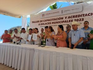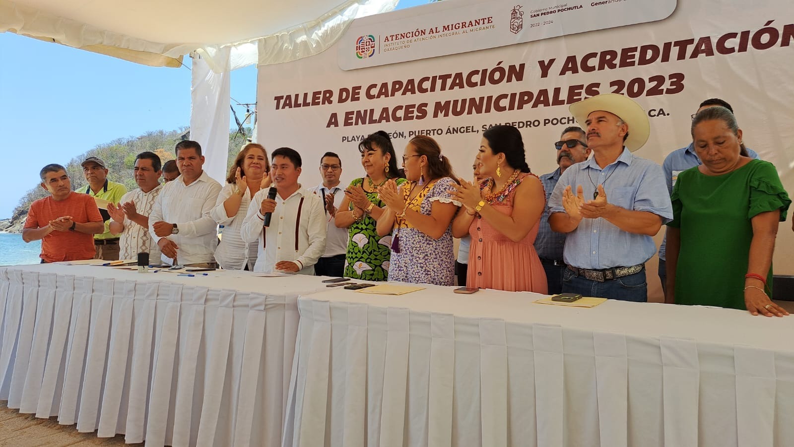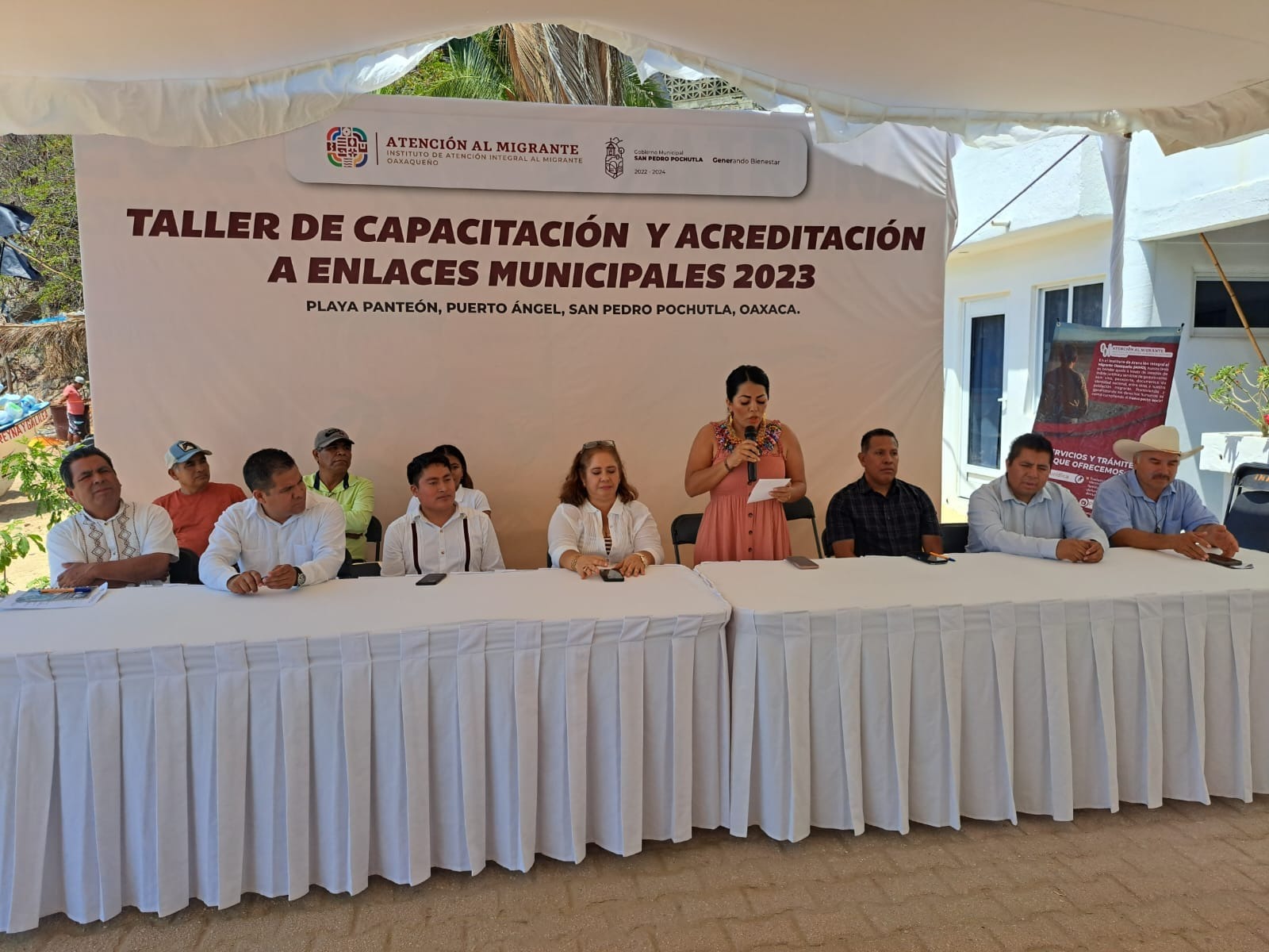 Durante la ceremonia realizada en el municipio de San Pedro Pochutla, el servidor público puntualizó que se trabaja con diversas instituciones con el propósito de atender de manera integral las necesidades y demandas de la población migrante y sus familias, ejemplo de ello fue el tercer Taller de Capacitación y Acreditación a Enlaces Municipales realizado en dicha comunidad de la costa oaxaqueña.