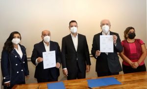 Oaxaca de Juárez, Oax. 7 de octubre de 2021.- En las alianzas y trabajo colaborativo en favor del sector educativo, el Instituto Estatal de Educación Pública de Oaxaca (IEEPO) y el Sindicato de Trabajadores de la Industria de la Radiodifusión, Televisión, Telecomunicaciones, Similares y Conexos de la República Mexicana (STIRTT), formalizaron un Convenio de Colaboración, el cual contó con la presencia del gobernador Alejandro Murat Hinojosa.