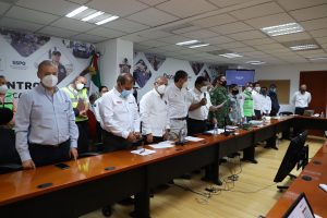 Los integrantes del Consejo Estatal de Protección Civil, encabezados por el secretario general de Gobierno, Francisco Javier García López, se reunieron en el Centro de Comando, Control, Comunicación y Cómputo C4 en donde evaluaron las acciones y tareas a desarrollarse ante este suceso.