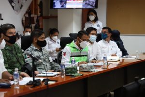 Así también participó vía Zoom en el Comité Nacional de Emergencias, encabezado por la secretaria de Seguridad y Protección Ciudadana, Rosa Icela Rodríguez Velázquez, que sesiona durante cada eventualidad o desastre para integrar información y tomar decisiones en coordinación con instancias de los gobiernos federal, estatales y municipales.