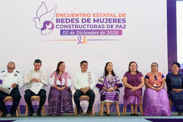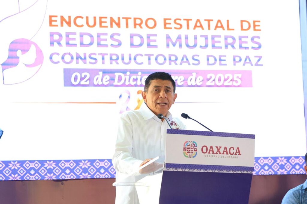 Santa Lucía del Camino, Oax. 2 de diciembre de 2025.- El Gobernador Salomón Jara Cruz inauguró el Tercer Encuentro Estatal de Redes de Mujeres Constructoras de Paz, como parte de las acciones que realiza el Gobierno del Estado para la prevención, atención y erradicación de la violencia contra este sector de la población.