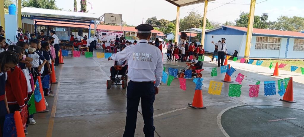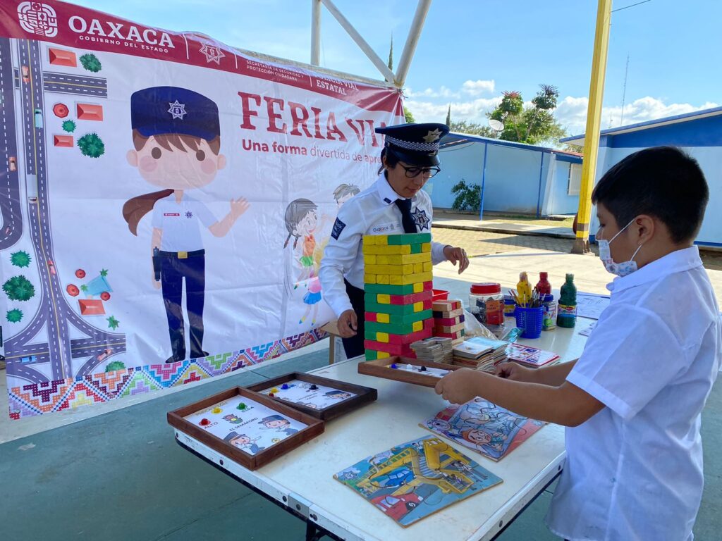 Oaxaca de Juárez, Oax., 21 de octubre de 2023.- Con el objetivo de concientizar a la sociedad sobre la importancia de la seguridad vial, en el marco del Día Azul por una Infancia Feliz, la Secretaría de Seguridad y Protección Ciudadana (SSPC) realizó la Feria Vial en la Villa de Zaachila, donde se llevaron a cabo charlas informativas y actividades lúdicas en la Escuela Primaria Enrique Reyes.