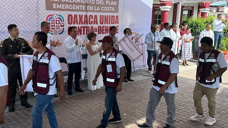 Santiago Pinotepa Nacional, Oax. 15 de agosto de 2024.- Con la participación de más de 200 habitantes de esta municipalidad, la secretaria de Salud de Oaxaca, Alma Lilia Velasco Hernández encabezó el inicio del fortalecimiento intensivo del Plan Emergente Oaxaca Unida contra el Dengue en la región Costa, con énfasis en ocho municipios prioritarios.