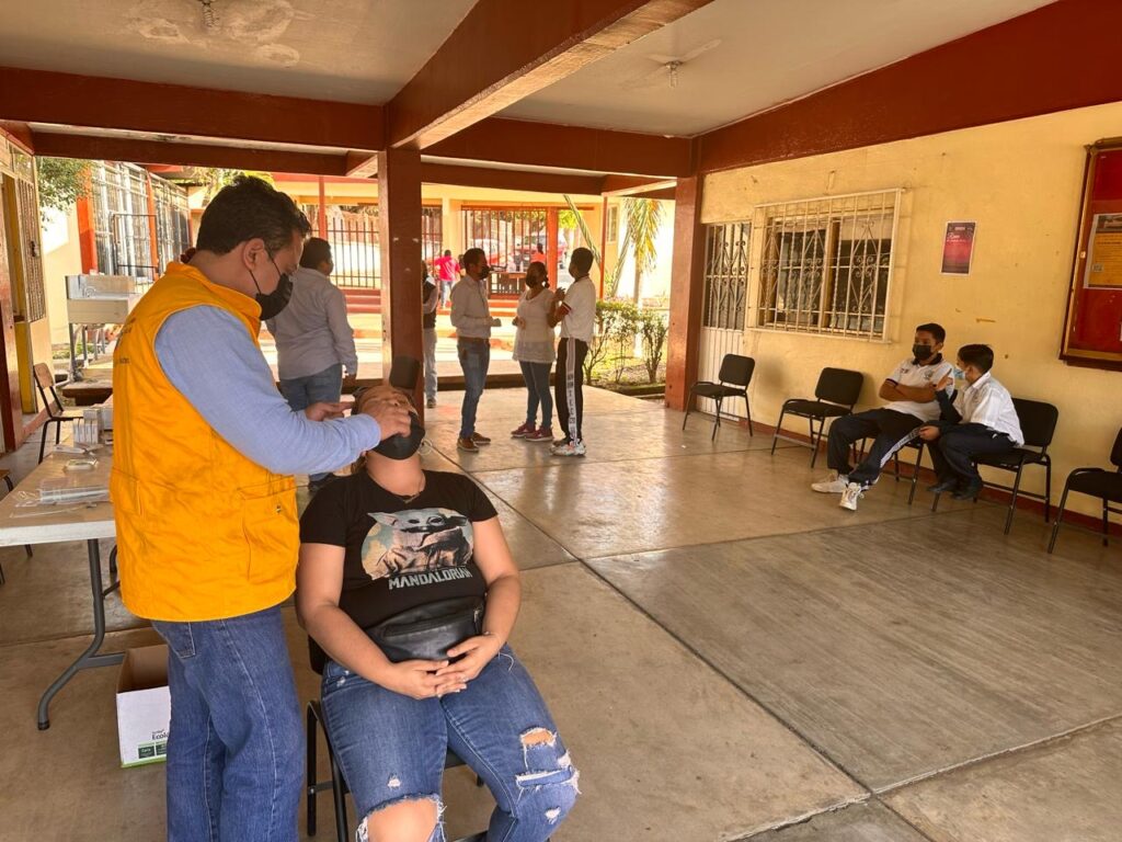 Al respecto, la Unidad de Inteligencia Epidemiológica para Emergencias en Salud (UIES) de la Jurisdicción Sanitaria número 3, con sede en Tuxtepec, realizó una intervención en la Secundaria Técnica número 120 y en Primaria Adolfo López Mateos, en donde se aplicaron 98 pruebas rápidas en la comunidad estudiantil y personal docente para detectar casos de Covid-19 e Influenza.