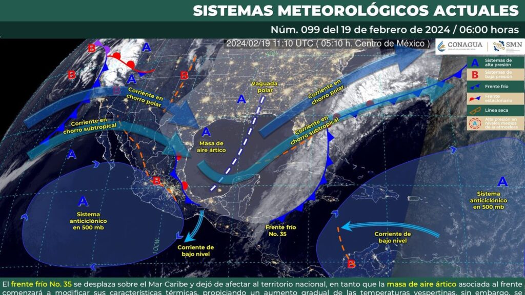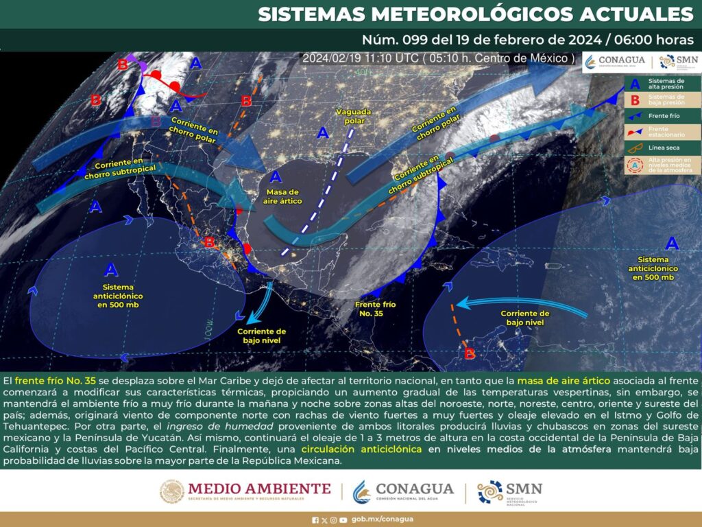 Lo anterior de acuerdo con el pronóstico del tiempo emitido por la Comisión Nacional del Agua (Conagua), en el que señalan que el frente frío número 35 se extenderá sobre el Mar Caribe junto con la masa de aire frío que lo impulsa, lo que hará que se debilite y deje de tener efectos en el estado de Oaxaca.