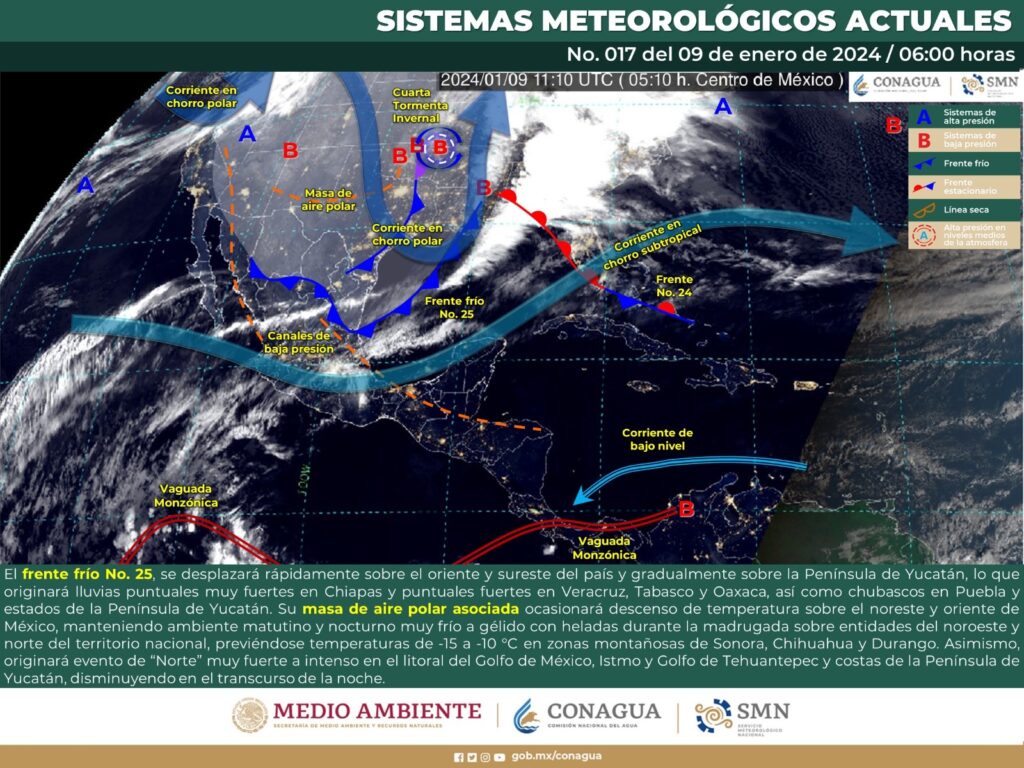 Frente frío número 25 provocará precipitaciones, bajas temperaturas y fuertes vientos en mayor parte del estado
