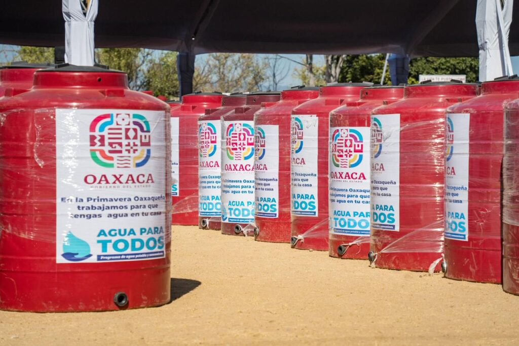 Como parte del programa Agua para Todas y Todos, estrategia integral para enfrentar la temporada de estiaje y hacer efectivo el derecho humano al agua, se entregaron tinacos a 450 familias de Trinidad de Viguera, 450 de Pueblo Nuevo y 400 de Santa Rosa Panzacola.