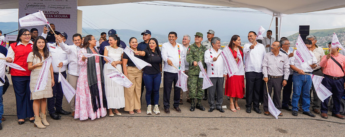 En el emblemático Mirador del Cerro del Fortín, el Mandatario Estatal indicó que ante la llegada de 129 mil 205 turistas en el marco de la máxima fiesta de las y los oaxaqueños, la actual administración ha emprendido dichas acciones para fortalecer las estrategias de seguridad para la sociedad oaxaqueña y quienes visiten la entidad en los próximos días.