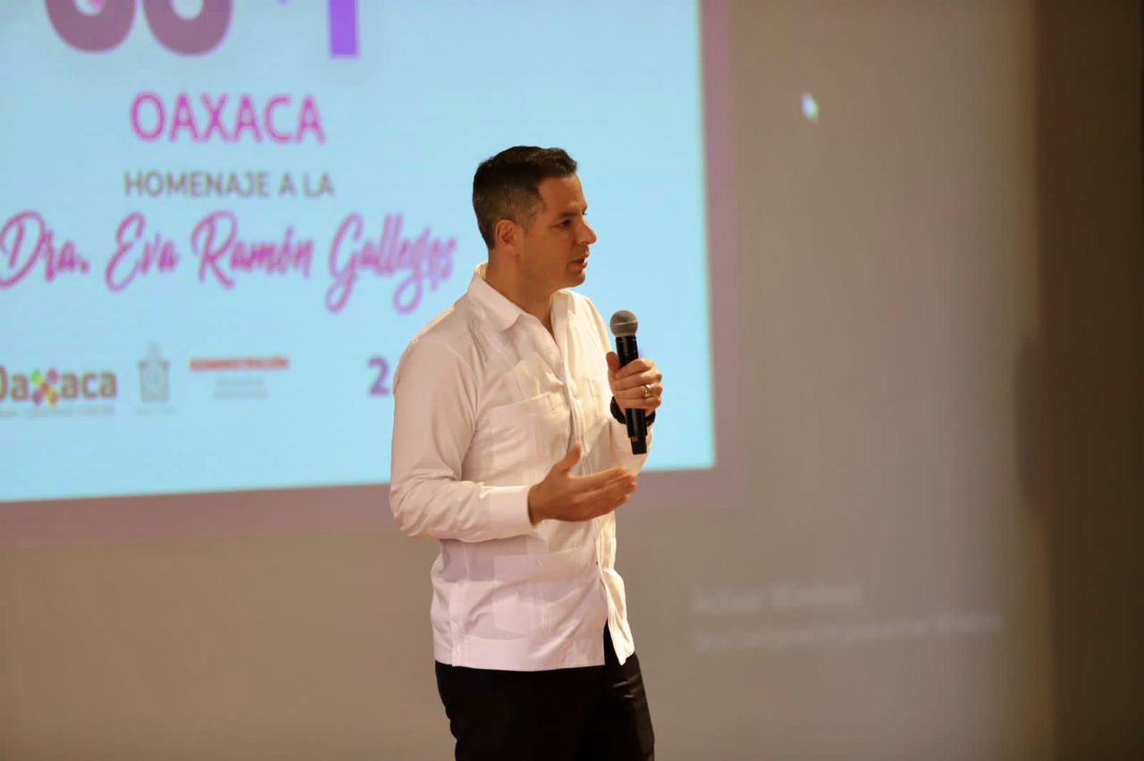 - El Gobernador participó en el segundo aniversario del Colectivo 50+1, en donde entregó un reconocimiento a la científica oaxaqueña Eva Ramón Gallegos, por haber descubierto un tratamiento para la eliminación del VPH