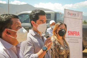 Zimatlán de Álvarez, Oax. 10 de marzo de 2021.– El Gobierno que encabeza Alejandro Murat Hinojosa, trabaja en las 8 regiones para construir obras importantes que benefician a miles de familias oaxaqueñas, entre ellas, 100 pavimentaciones que se encuentran en proceso, obras de agua potable, drenaje, electrificación, y la rehabilitación de 12 mercados, informó el secretario de las Infraestructuras y el Ordenamiento Territorial Sustentable (Sinfra), Javier Lazcano Vargas.