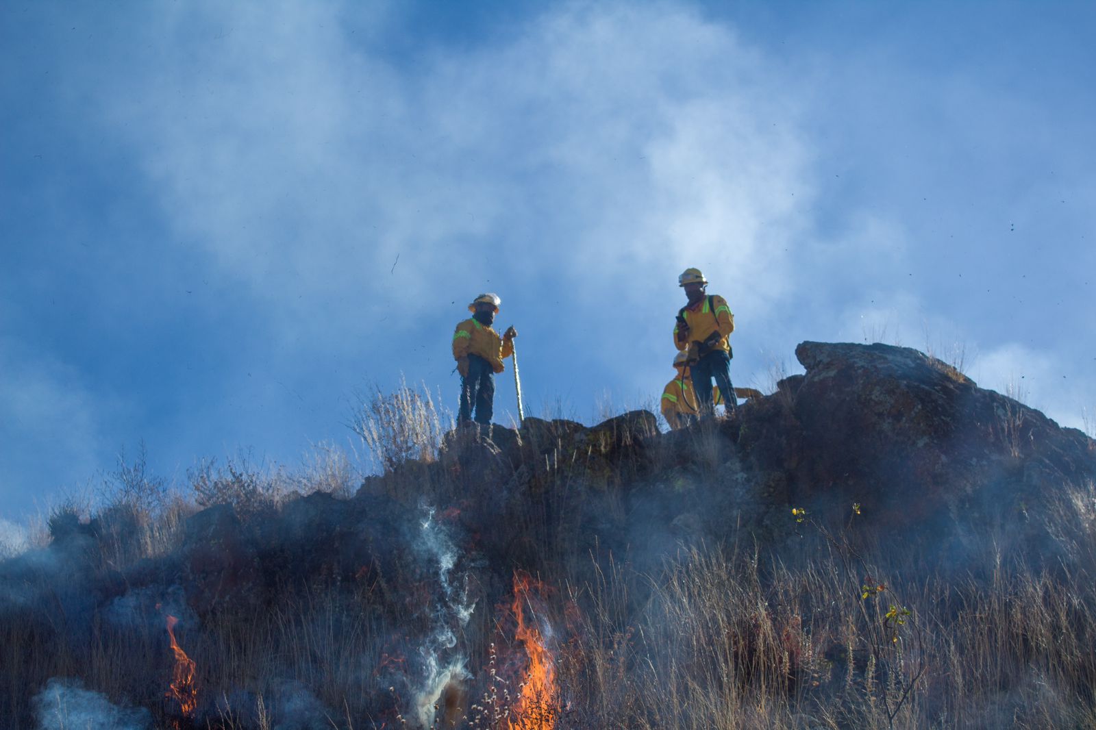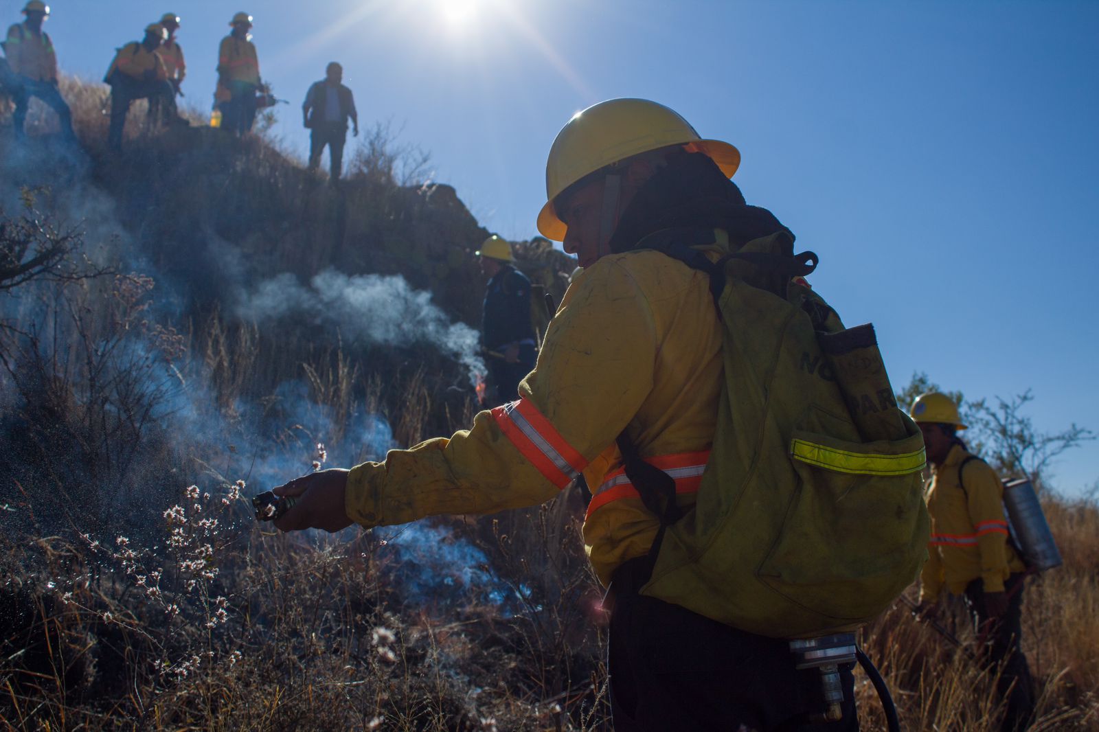 Coordinados por la Comisión Estatal Forestal (Coesfo), las mujeres y unas 85 personas participaron en la línea negra, la quema controlada para prevenir los incendios de pastizales que pueden afectar una riqueza biológica y cultural invaluable de este Patrimonio de la Humanidad.