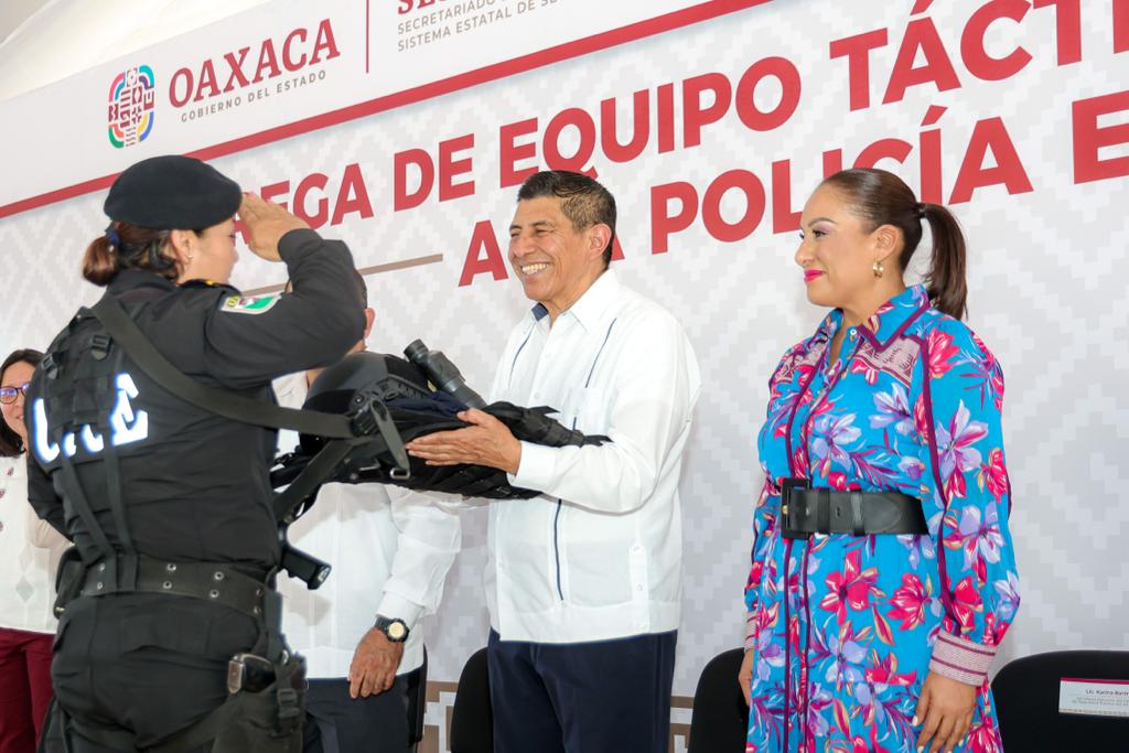 Muestra de ello es que, en el marco del Día del Policía, el Gobernador del Estado Salomón Jara Cruz entregó 219 chalecos balísticos, 200 dispositivos móviles de monitoreo tipo Smartphone de Misión Crítica y ocho equipos de visión nocturna, con una inversión de 14 millones 152 mil 273 pesos, como parte del equipo táctico y tecnológico que requieren.