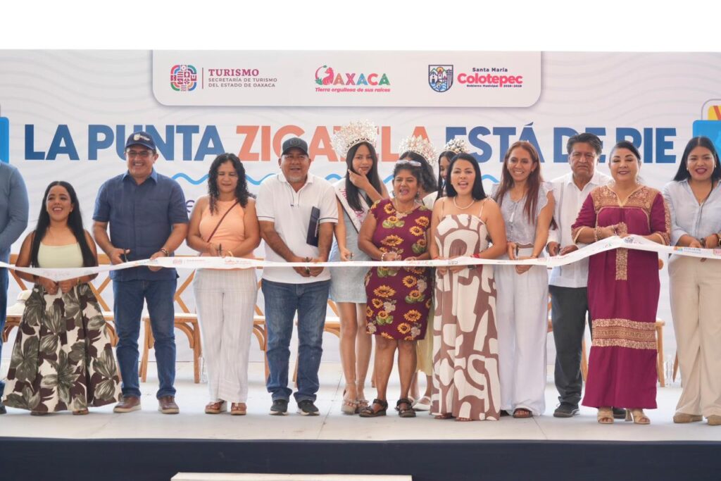 Santa María Colotepec, Oax., 2 de abril de 2026.- Para reactivar la economía de las familias prestadoras de servicios turísticos afectadas por el incendio registrado el pasado mes de marzo, el Gobierno del Estado a través de la Secretaría de Turismo (Sectur Oaxaca) inauguró la feria gastronómica y artesanal “Punta Zicatela está de pie” en Puerto Escondido.