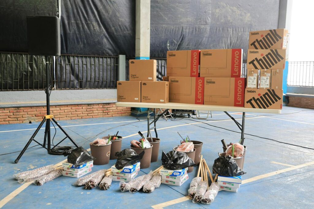 • En este evento, el IEEPO entregó equipamiento tecnológico a cuatro escuelas del nivel básico, que consta de: computadoras, impresoras, proyectores y material de aseo, deportivo y de oficina. Cabe destacar que ya se otorgó mobiliario.