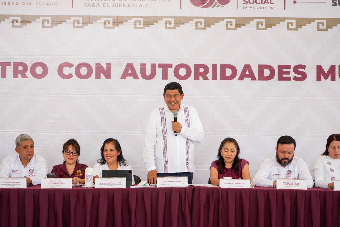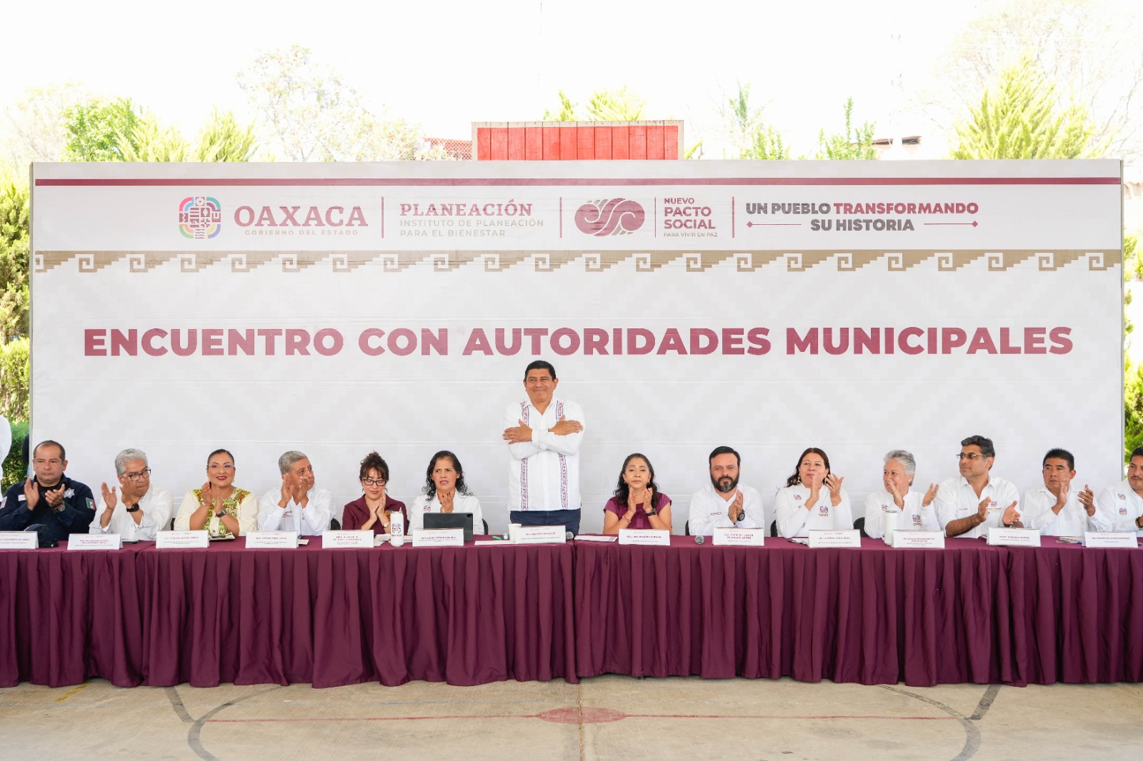 En presencia de titulares de todo el gabinete gubernamental, y acompañado de la presidenta honoraria del Sistema para el Desarrollo Integral de la Familia (DIF) Oaxaca, Irma Bolaños Quijano, el Gobernador explicó que se han realizado 15 encuentros distritales y en 10 o 12 días se efectuarán los 10 restantes para atender a la totalidad de autoridades municipales sin distinción de colores ni credos, porque ningún municipio será marginado por este gobierno de oaxaqueños.