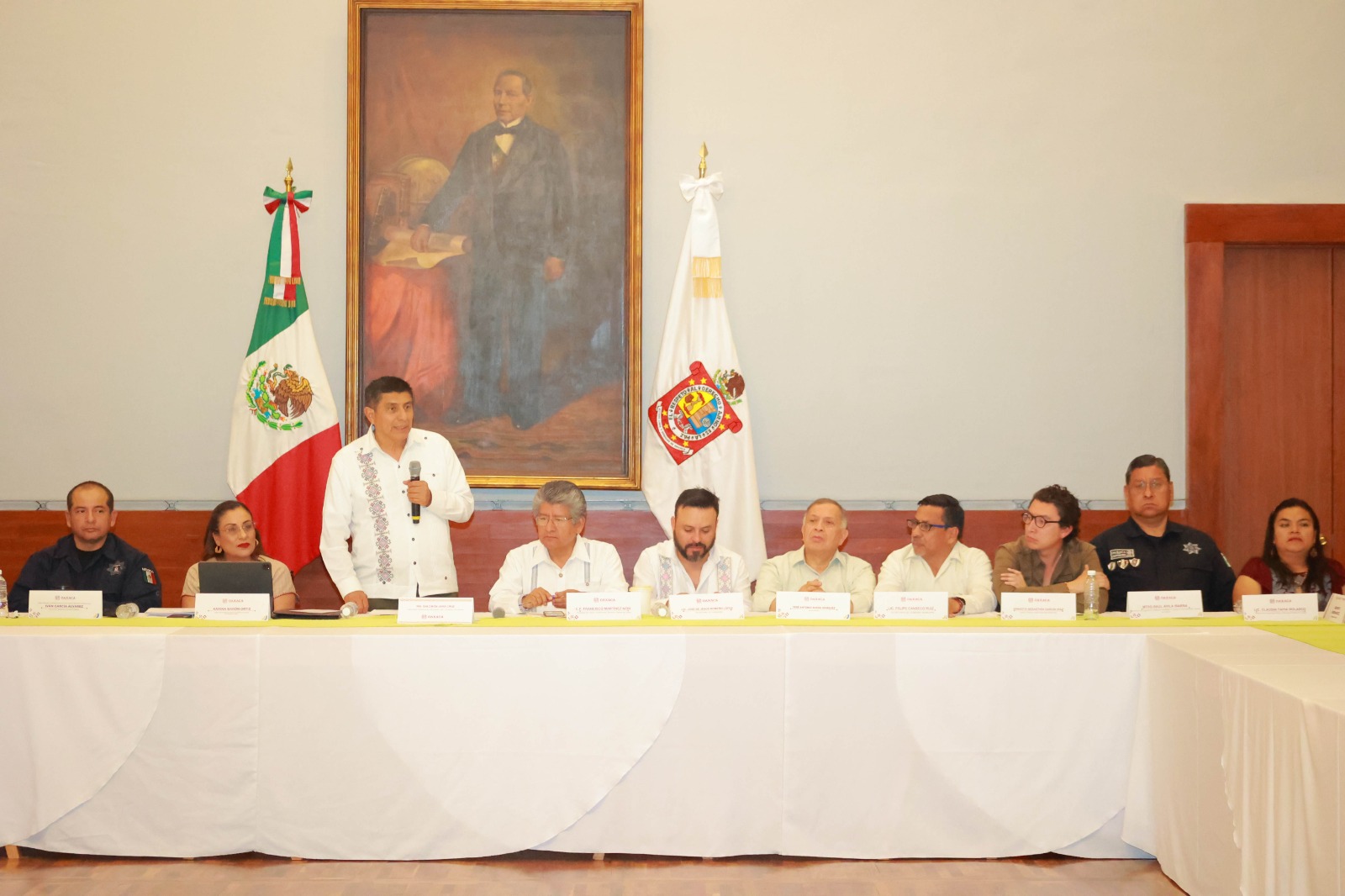 En presencia de la secretaria Ejecutiva del Sistema Estatal de Seguridad Pública, Karina Barón Ortiz; el secretario de Gobierno, Jesús Romero López y el secretario Seguridad y Protección Ciudadana Iván García Álvarez; entre otros servidores públicos estatales y municipales, el Ejecutivo estatal recalcó que la Central de Abasto ya no puede continuar en las mismas condiciones de inseguridad y se requiere del esfuerzo de los tres niveles de gobierno para lograr un centro comercial digno, a la altura de las necesidades y cultura de las y los oaxaqueños.