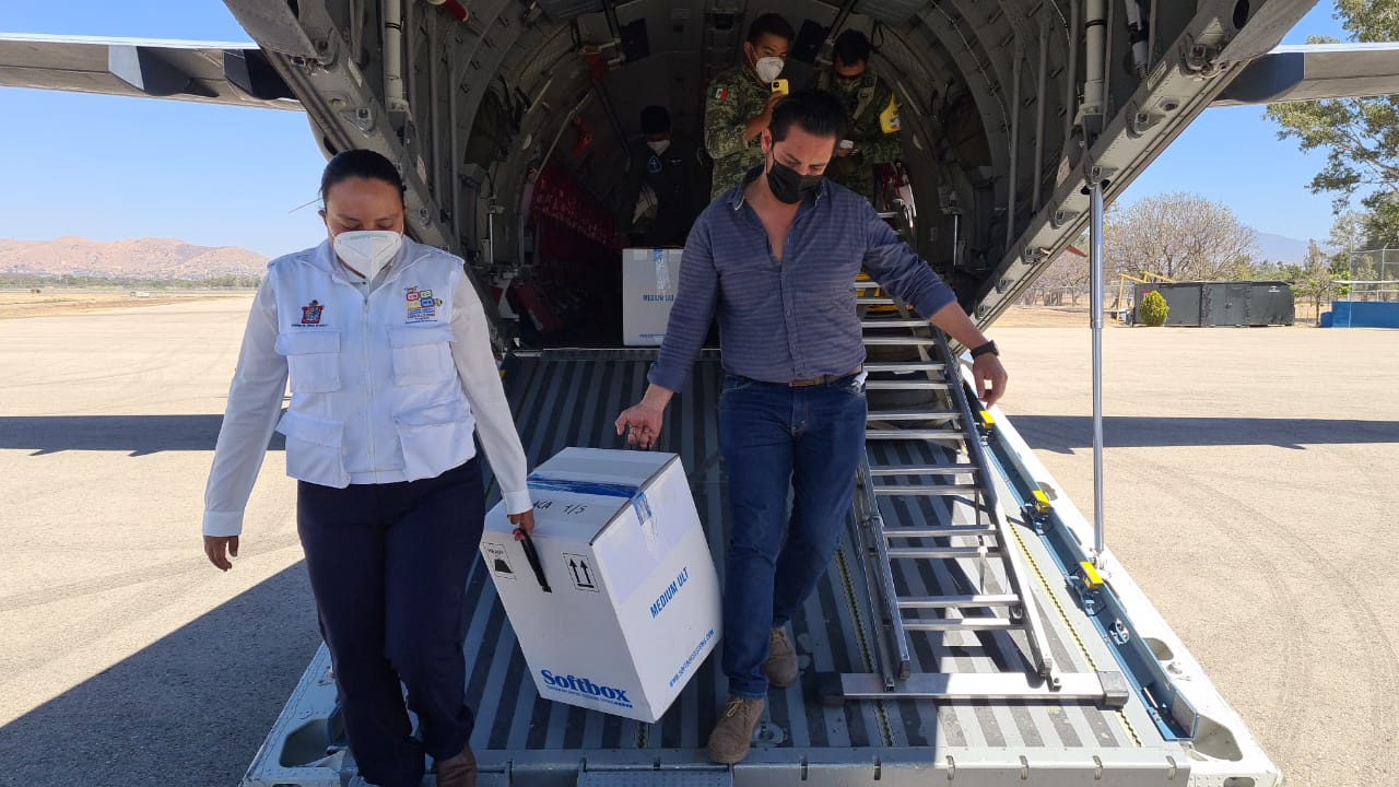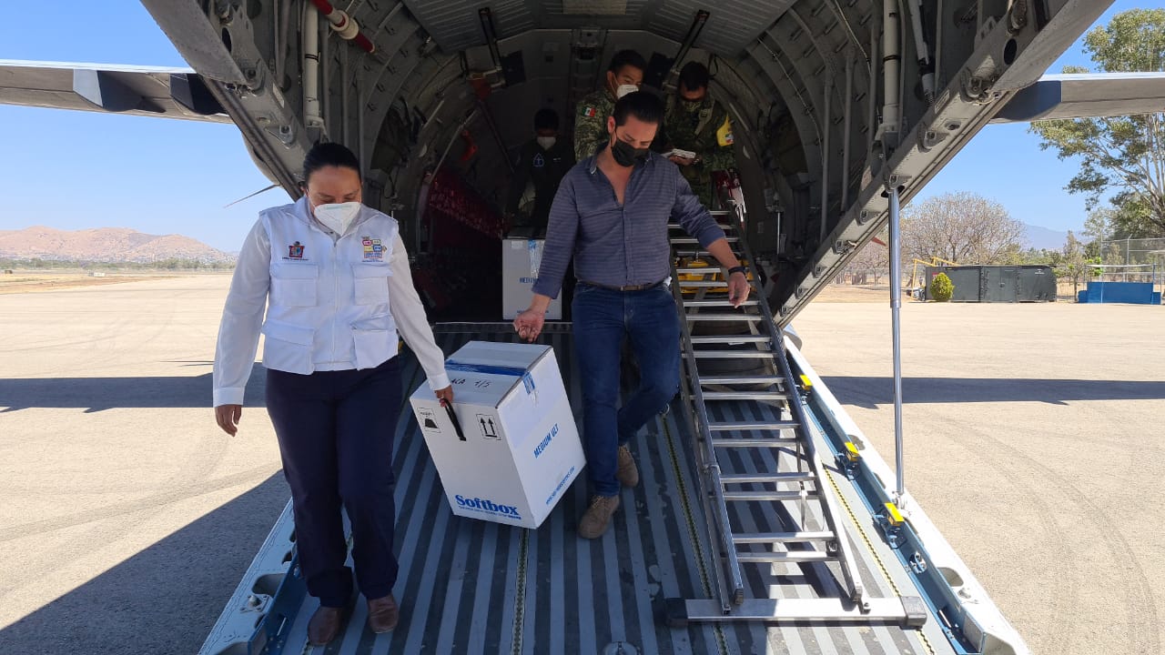 En este sentido, los SSO señalan que esta mañana han sido informados por las autoridades federales sobre el arribo a la capital oaxaqueña de 21 mil 450 dosis de la vacuna contra el COVID-19 del laboratorio Pfizer, para dar continuidad a las jornadas de vacunación de personas adultas mayores en los Valles Centrales.