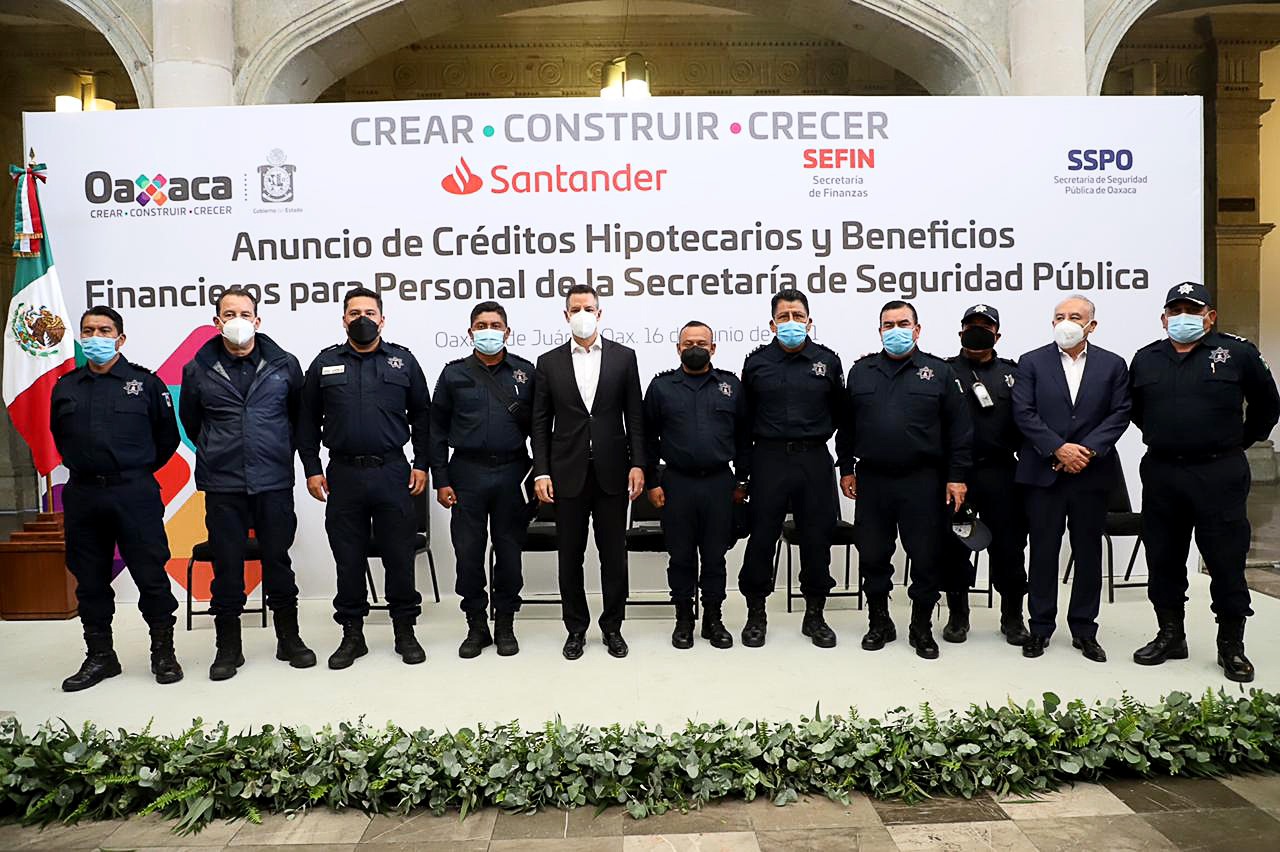 - El gobernador Alejandro Murat anunció el inicio del programa de Otorgamiento de Créditos Hipotecarios y Beneficios Financieros a Policías Estatales; habrá créditos de 100 mil a 4 millones de pesos