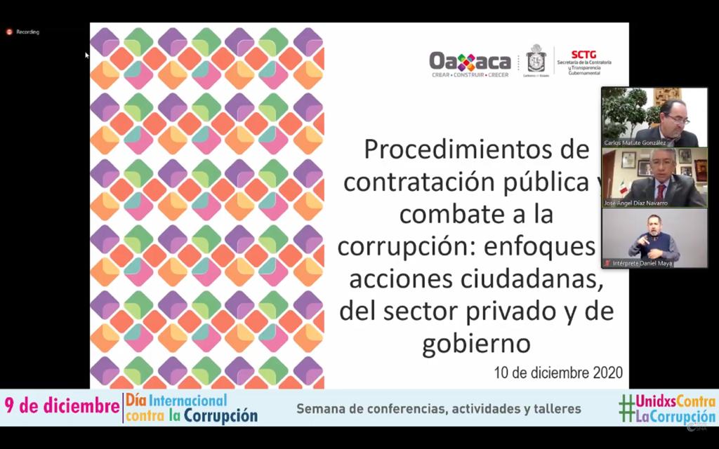 - El Contralor de Oaxaca participó en la semana de actividades con motivo del Día Internacional contra la Corrupción 2020