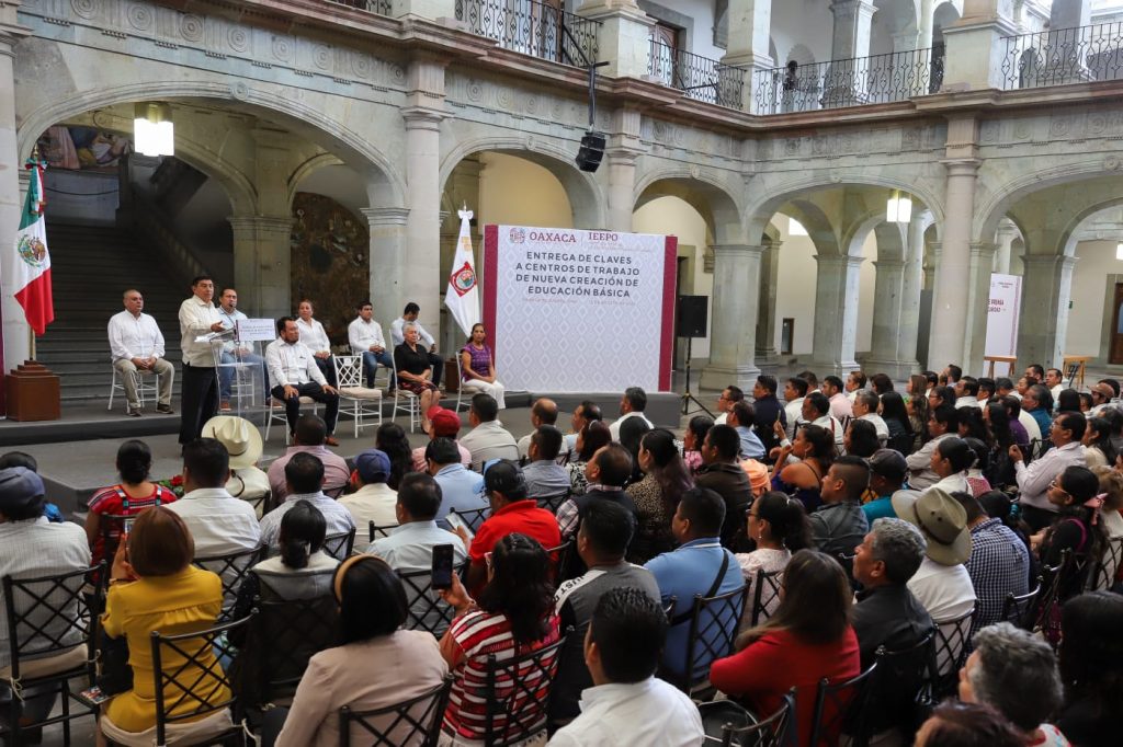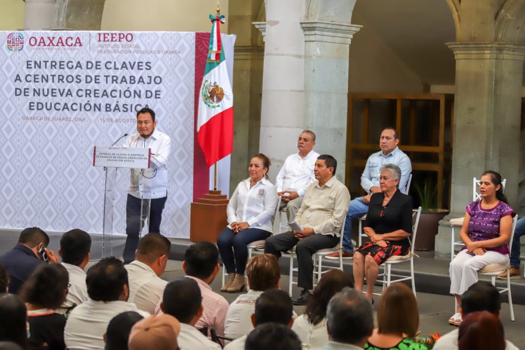 Recibieron de manera simbólica las claves de Centros de Trabajo el preescolar indígena de San Isidro Miramar, San Agustín Loxicha; primaria indígena de la colonia Cuauhtémoc, de San Juan Bautista Tuxtepec; la primaria indígena de la localidad Juquilita de la Heroica Ciudad de Juchitán de Zaragoza; la Telesecundaria, de la localidad Revolución 20 de Noviembre de San Pedro Tapanatepec y la escuela primaria federal de El Tejón, Villa de Tamazulápam del Progreso.