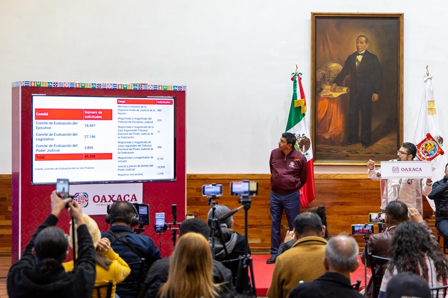 Por otro lado, se comunicó que, de acuerdo con los Comités de Evaluación de los tres Poderes, se registraron 49 mil 398 solicitudes de aspirantes a candidaturas para la elección del Poder Judicial.