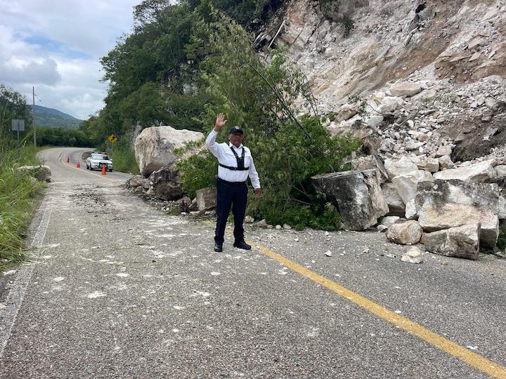 La Policía Vial Estatal informó que se registró un derrumbe en el kilómetro 59+200, a la altura del paraje el Clarín