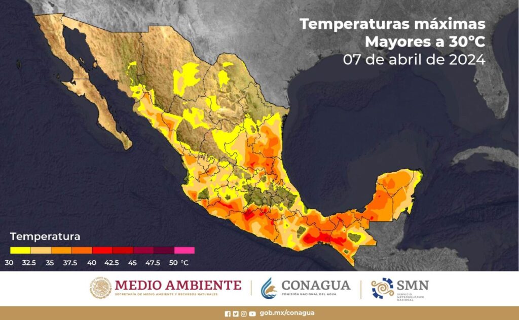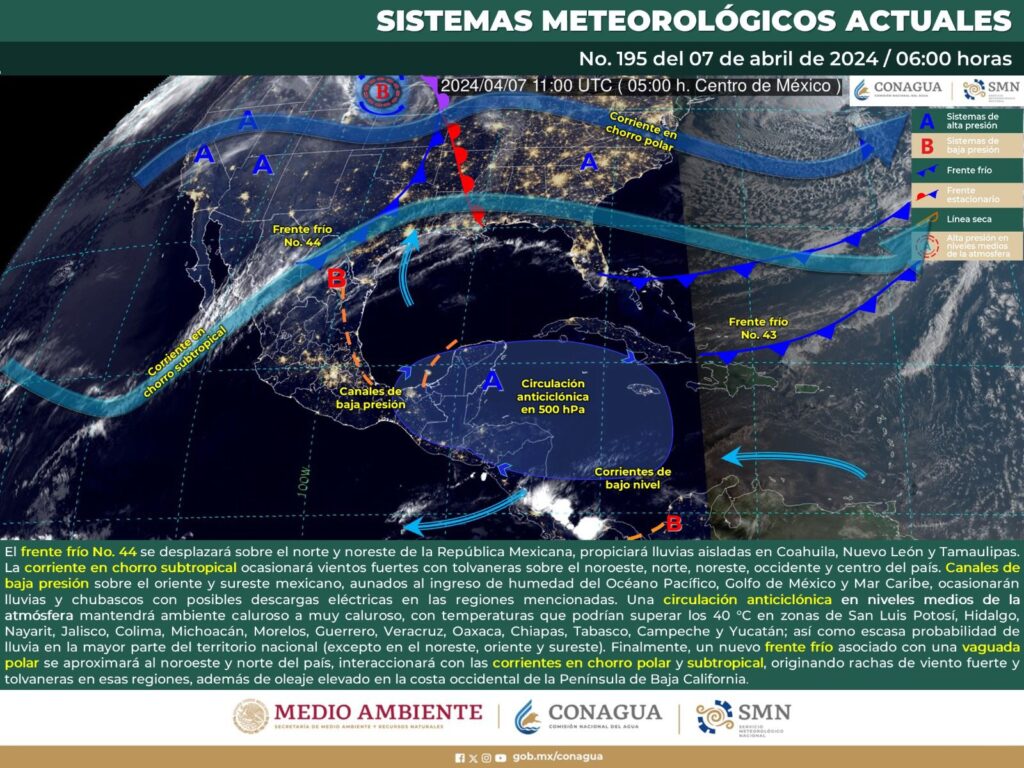 De acuerdo al pronóstico emitido por la Comisión Nacional del Agua (Conagua), se mantiene el predominio de ambiente caluroso a muy caluroso. Vientos del sur y sureste con tolvaneras por la tarde.