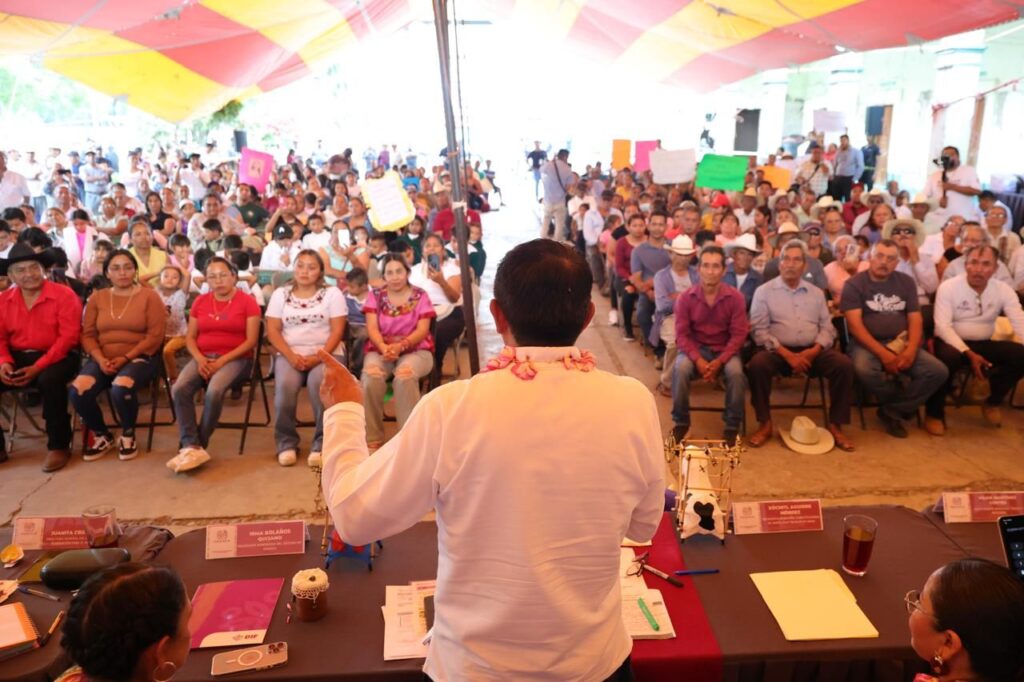 • Reunido con las y los habitantes, el Gobernador de Oaxaca autorizó construcciones y entrega de material a siete escuelas de esta localidad, con una inversión de 4.5 millones de pesos