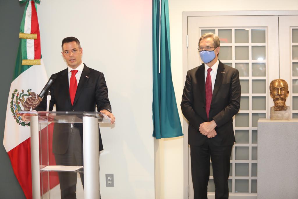- En la sede de la Embajada de México en Washington D.C., el gobernador Alejandro Murat y el embajador Esteban Moctezuma realizaron la develación del busto del diplomático oaxaqueño Matías Romero