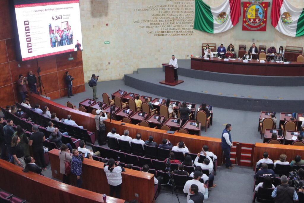Afirmó que, a través de estrategias de diálogo y con acuerdos, se lograron atender 4 mil 341 mesas en donde se resolvieron 666 conflictos con temáticas contenciosas, electorales, municipales, políticas, religiosas, sociales, agrarias y de atención a organizaciones.