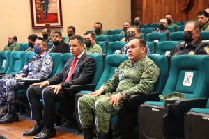 Ciudad de México. 28 de junio de 2022.- El gobernador Alejandro Murat Hinojosa, fue invitado al Foro del Colegio de la Defensa Nacional, organizado por el titular de la Secretaría de la Defensa Nacional (Sedena), General Luis Cresencio Sandoval; donde impartió la ponencia “La política del estado de Oaxaca en materia de desarrollo y seguridad”.
