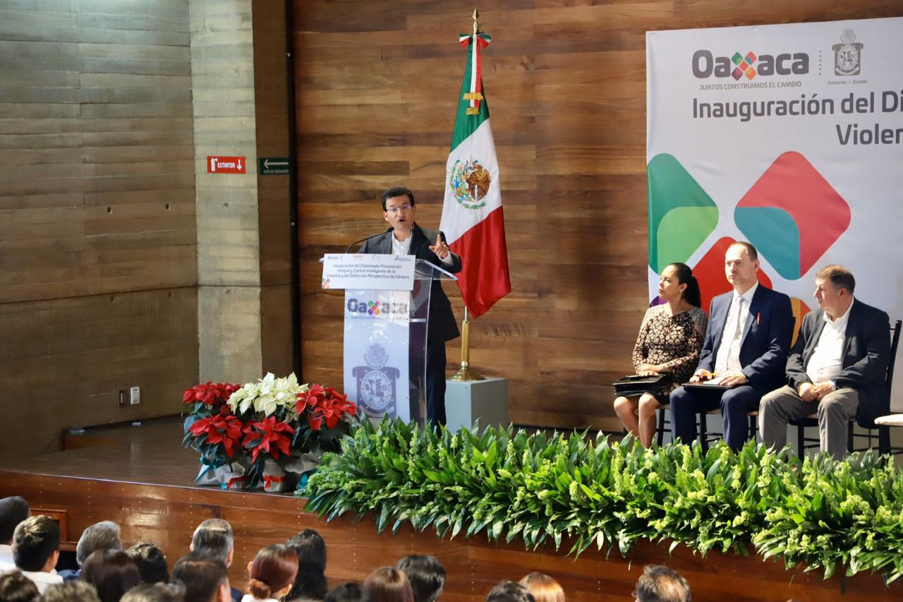 Ante el coordinador de Prevención del Delito y Reducción de la Violencia de la Oficina de las Naciones Unidas contra la Droga y el Delito (UNODC), Markus Gottsbacher, el titular de SESESPO indicó que el gobernador Alejandro Murat Hinojosa impulsa acciones para que las personas que se encuentran al frente de las instancias de atención de la violencia de género cuenten con las herramientas necesarias para reducir este flagelo.