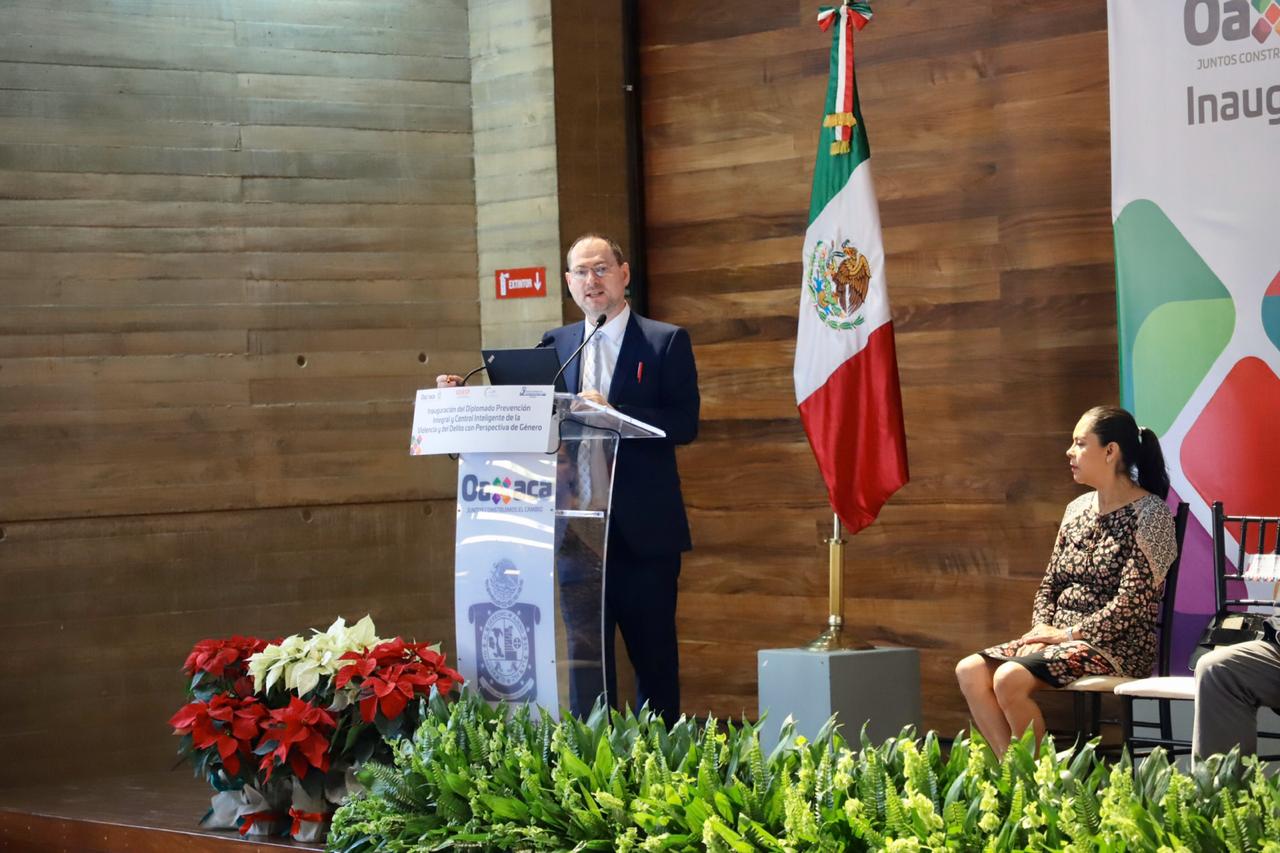 En su oportunidad Markus Gottsbacher –quien ofreció una conferencia magistral durante el diplomado- reconoció la iniciativa del Gobierno de Oaxaca para llevar a cabo estas acciones para prevenir y atender conductas delictivas, así como violencia de género, en el que se establece un trabajo coordinado con diversas instancias y con ello cumplir con la Agenda 2030 de la Organización de las Naciones Unidas para procurar la paz y justicia entre la sociedad y de conforme a los Acuerdos Internacionales para la reducción de estos fenómenos.