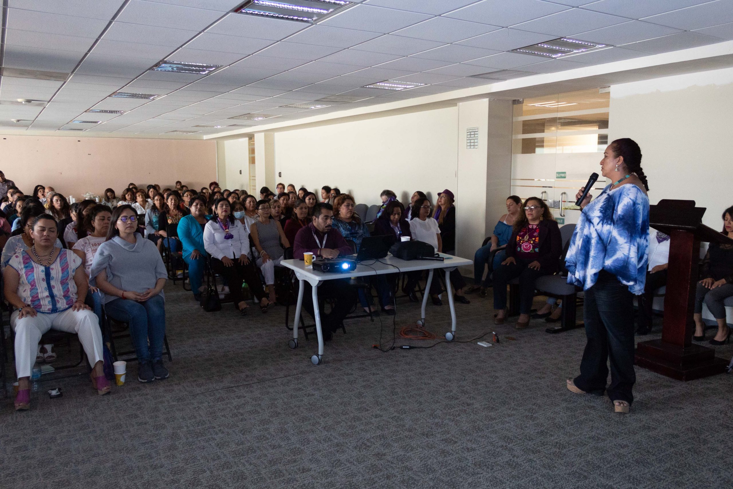 La plática fue dirigida por la psicoterapeuta Angélica Jiménez Nevares, quien instruyó a las mujeres del capital humano sobre los conocimientos necesarios para aumentar su participación en los procesos de toma de decisiones y al acceso al poder individual.