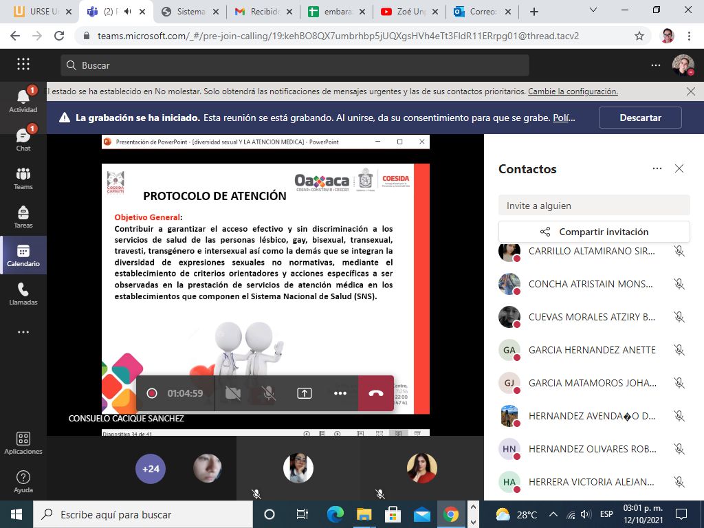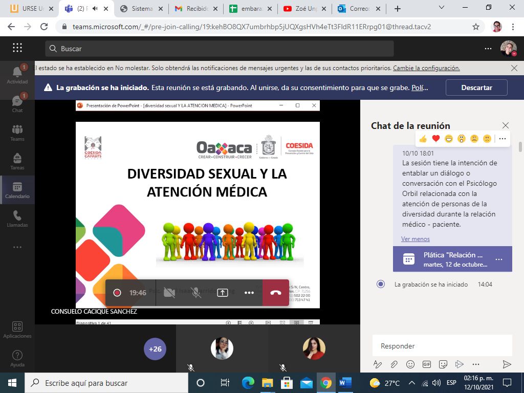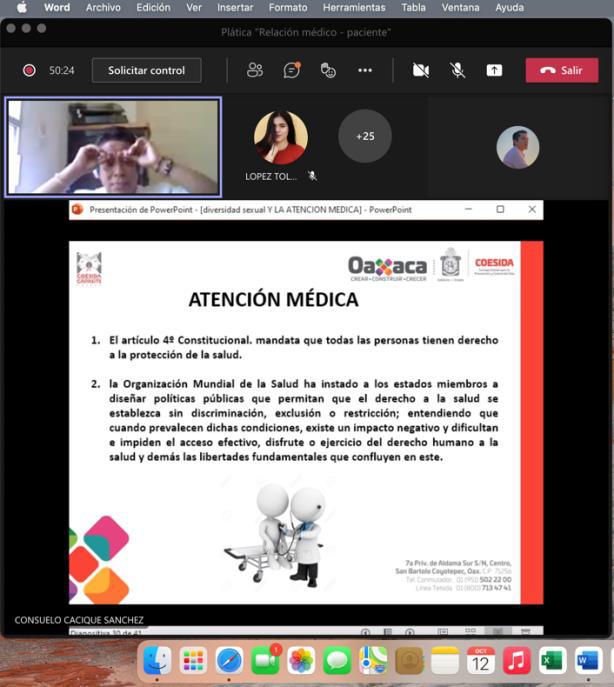 San Bartolo Coyotepec, Oax. 27 de octubre de 2021.- A fin de contribuir al mejoramiento de la atención en los servicios de salud hacia personas de la comunidad Lésbico, Gay, Bisexual, Travesti, Transexual, Transgénero, Intersexual y Queer (LGBTTTIQ+), el Consejo Estatal para la Prevención y Control del Sida (Coesida), a través de su programa UniverSida, implementó el taller “Diversidad Sexual y la atención médica” a estudiantes de la Facultad de Medicina y Cirugía de la Universidad Regional del Sureste (URSE) Campus “El Rosario”.