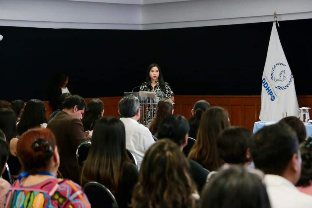 Oaxaca de Juárez, Oax., 31 de enero de 2024. La titular de la Secretaría de las Mujeres Elisa Zepeda Lagunas reconoció la importancia de la sistematización y análisis de la diversidad de violencias registradas en la presentación del Informe Especial: Violencia contra las Mujeres en el Ejercicio Público presentado por la Defensoría de los Derechos Humanos del Pueblo de Oaxaca (DDHPO).