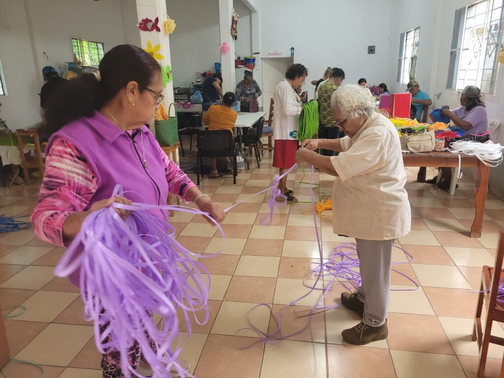 De esta manera, el organismo estatal otorgó al Grupo de Desarrollo Comunitario 400 kilogramos de hilo de plástico plano, 500 botones magnéticos color dorado y 500 plateados, 20 tijeras y 20 moldes de madera. Además, brindó capacitación a 21 integrantes para la elaboración de estos artículos.