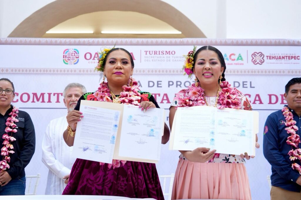 La encargada de la política turística estatal tomó protesta a las presidentas y presidentes de los municipios que conforman esta ruta, que será presidida por Ana Cecilia Pérez Velásquez, de Santo Domingo Tehuantepec; y tendrá como secretaria a Leticia Sibaja Mendoza, de Santa María Jalapa del Marqués.