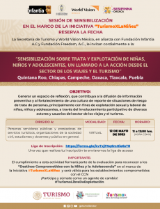 - La Secretaría Ejecutiva invita a participar en la sensibilización sobre la trata y explotación de niñas, niños y adolescentes, en el marco de la iniciativa Turismo por la Niñez.