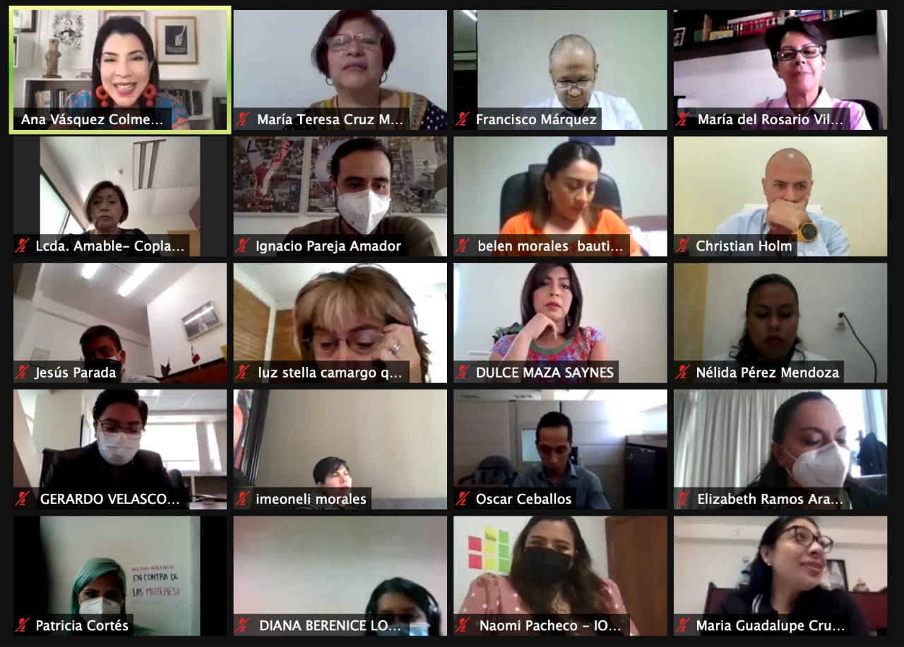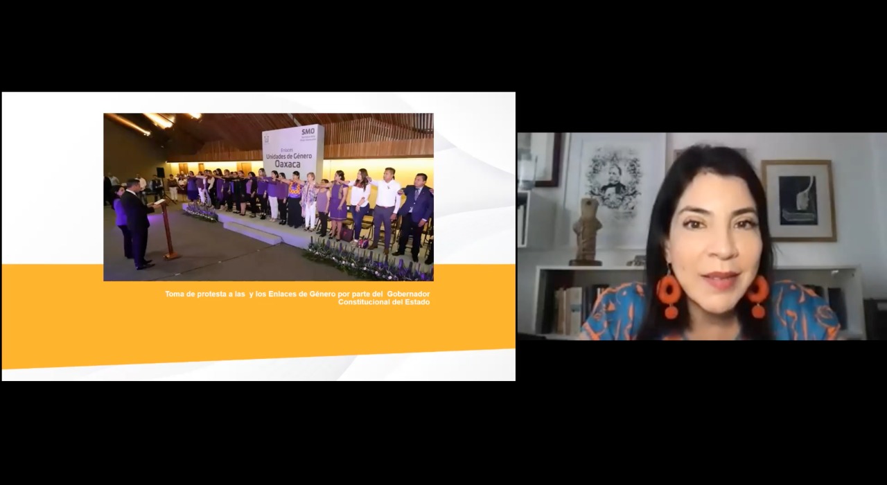 Oaxaca de Juárez, Oax. 23 de junio de 2021. Durante la Reunión Informativa sobre el Panorama de las y los Enlaces de Género, la titular de la Secretaría de las Mujeres de Oaxaca (SMO), Ana Vásquez Colmenares Guzmán dio a conocer las acciones afirmativas que actualmente se trabajan de forma interinstitucional, para la transversalización de la perspectiva de género al interior de todas las dependencias de gobierno estatal.