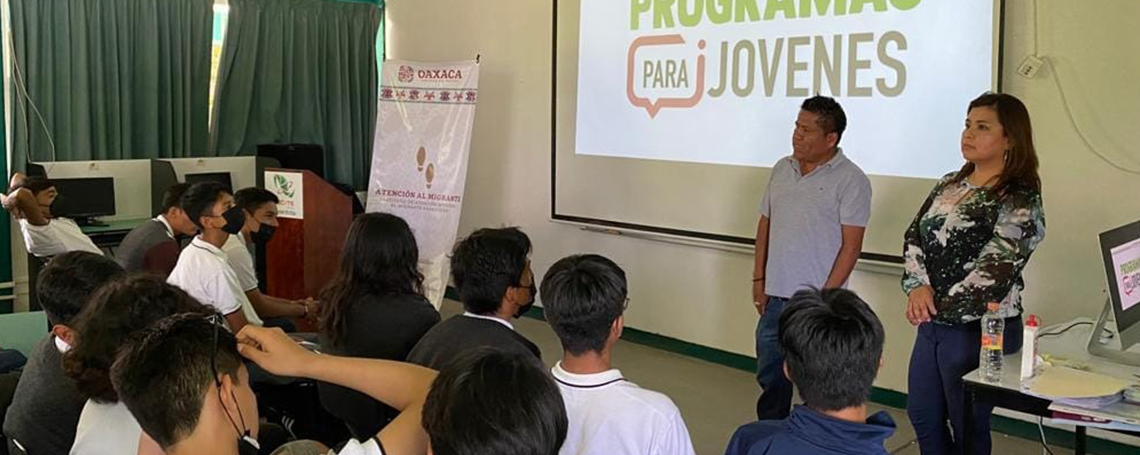 También se les expuso las múltiples oportunidades de desarrollo que existen en Oaxaca al ser un estado que cuenta con recursos naturales, atractivos turísticos y posición geoestratégica, entre otras, así como programas institucionales dirigidos a jóvenes, los cuales pueden impulsarles para lograr sus objetivos.