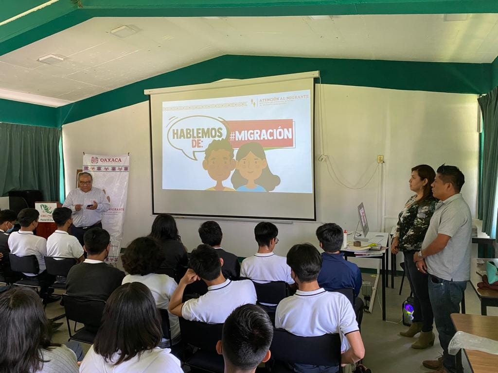 En este marco, el director del IAIMO informó que para brindar información eficaz sobre los peligros que se enfrentan las personas al migrar, se impartió la plática “Hablemos de migración” dirigida a estudiantes del plantel 05 del Colegio de Estudios Científicos y Tecnológicos del Estado de Oaxaca (Cecyteo) de Etla.