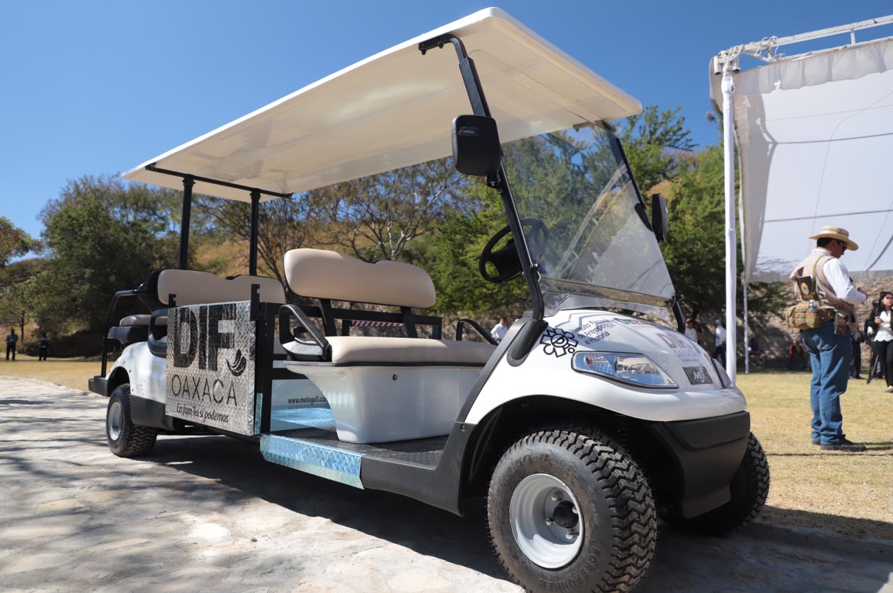 Con las obras de accesibilidad, las cuales tuvieron una inversión de 3.5 millones de pesos, también se entregaron dos carritos y cuatro sillas eléctricas para trasladar a estas personas por la zona arqueológica, una de las más importante de Mesoamérica.
